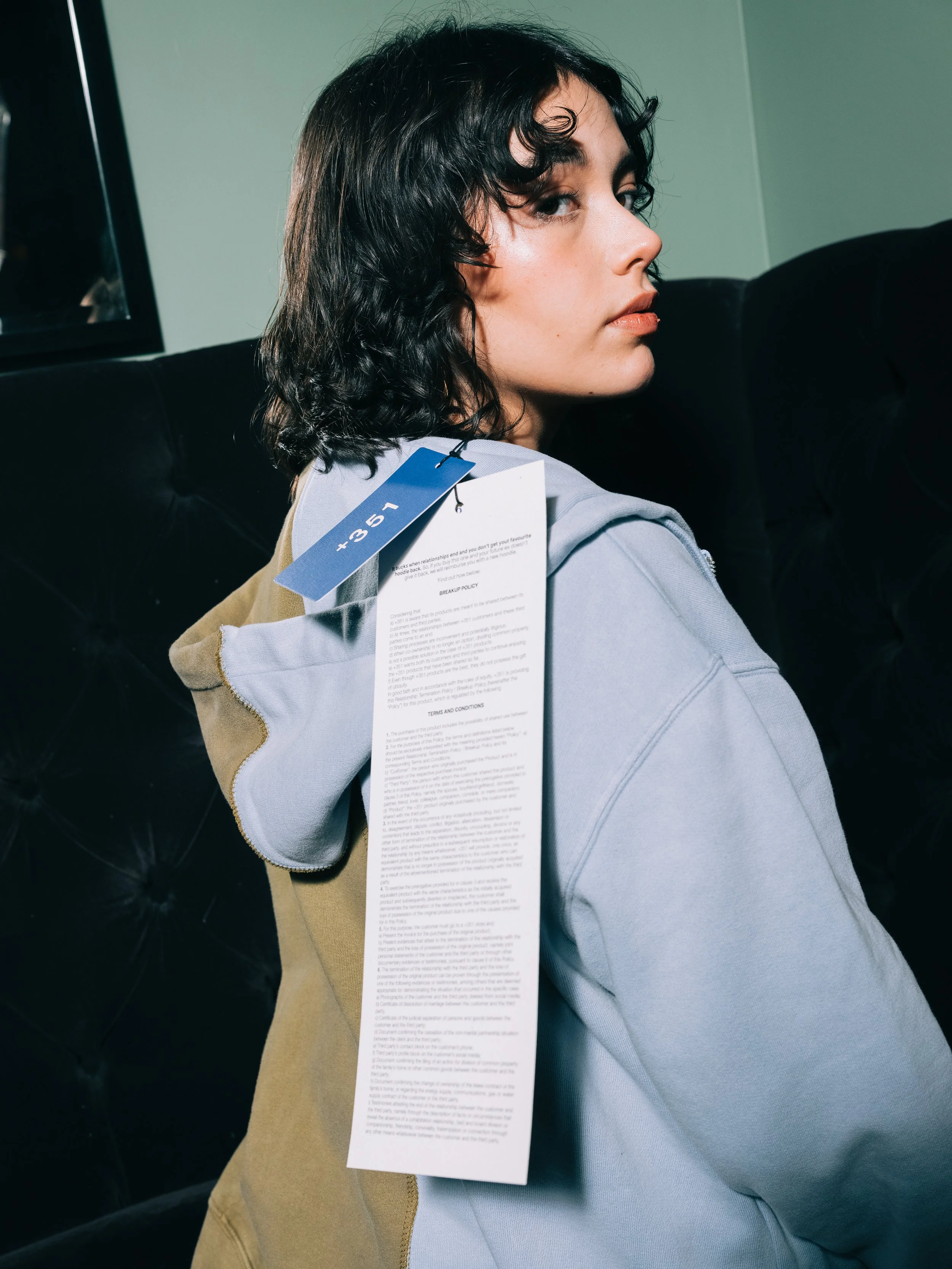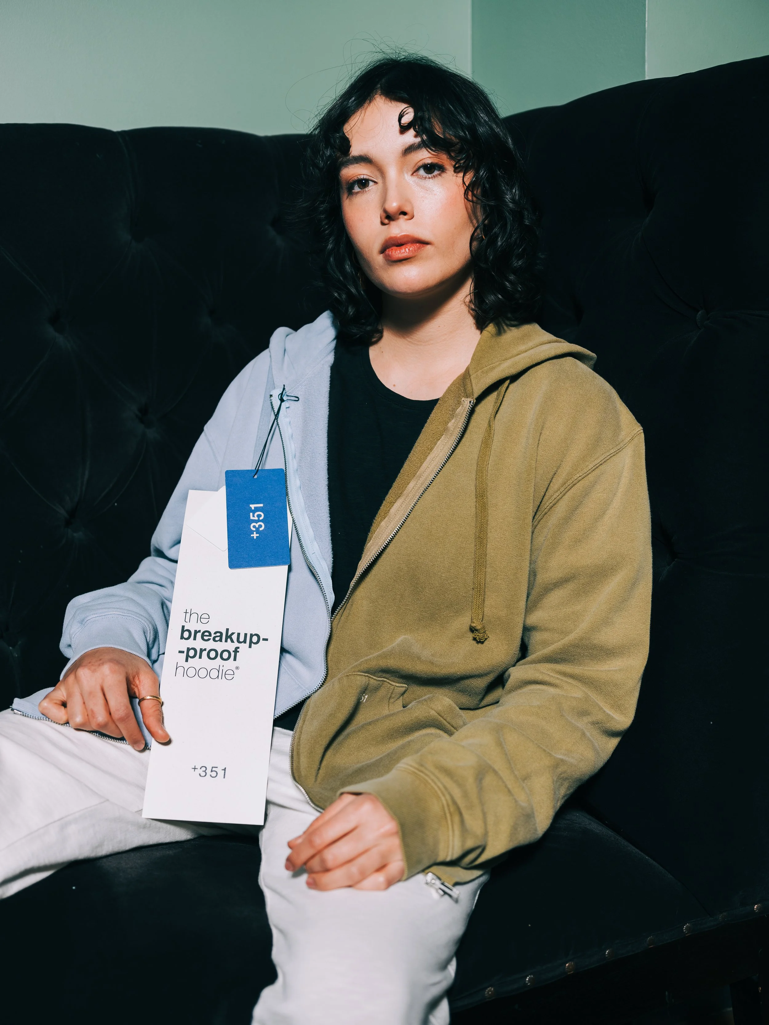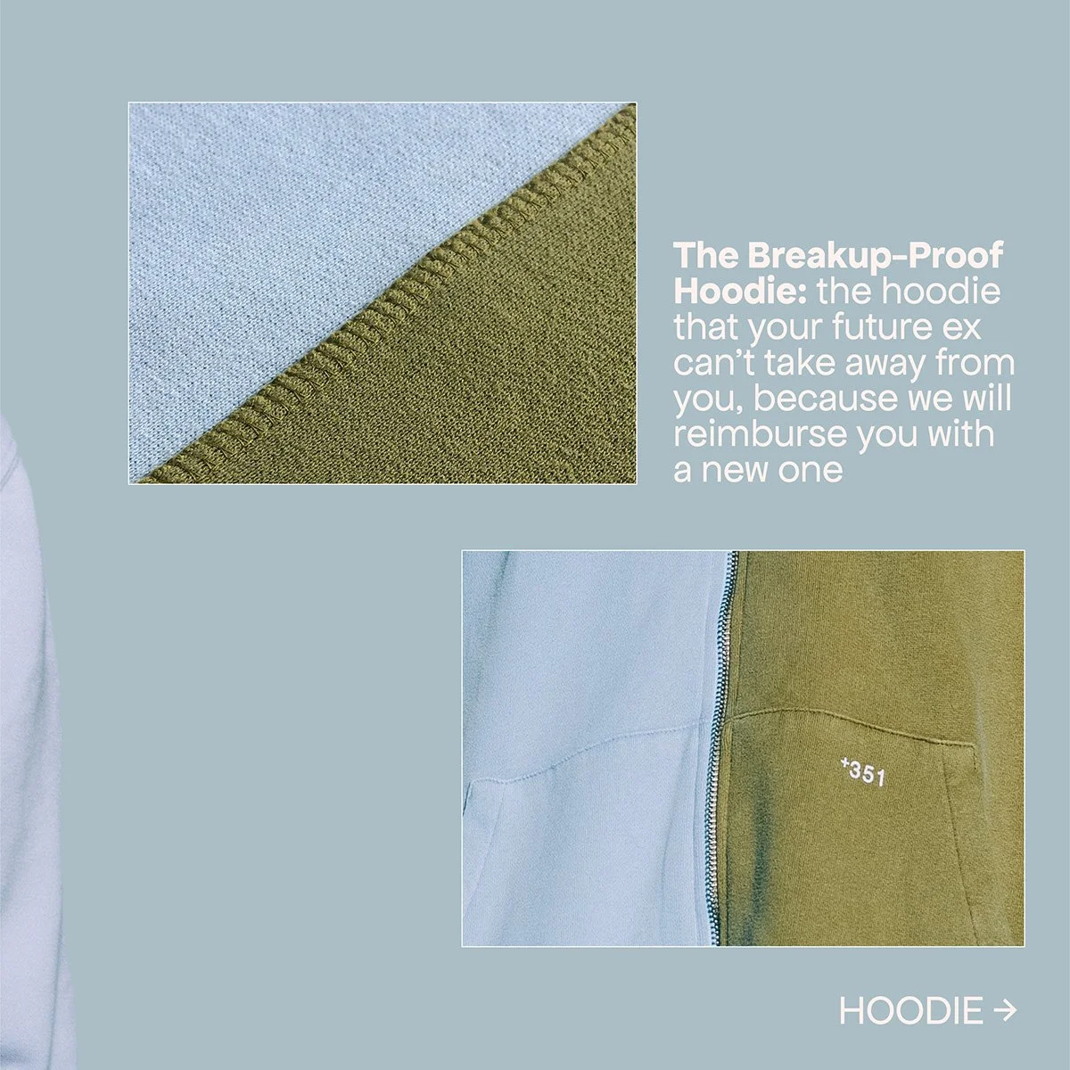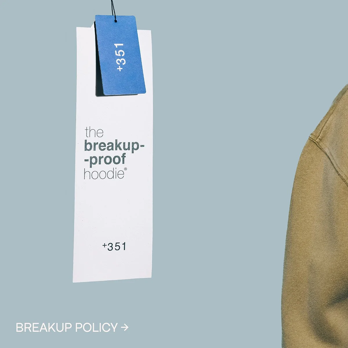 So we created the breakup proof hoodie. It came with its own breakup policy, that allowed hoodieless ex boyfriends to get a new hoodie, for free.